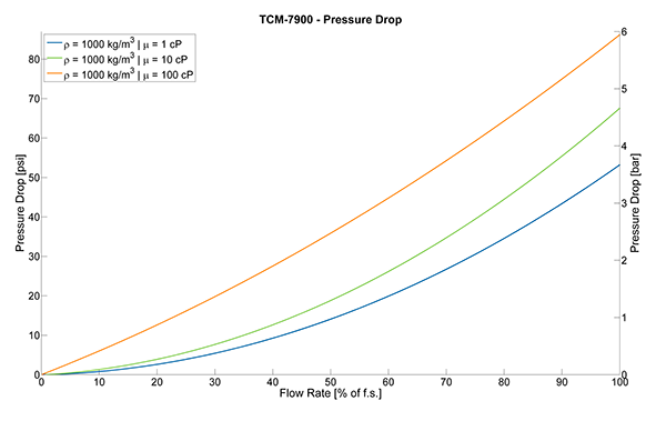 TRICOR PRO TCMP7900科氏力流量計包含了密度測量和質(zhì)量流量測量的功能,其質(zhì)量流量為7900公斤/小時(290磅/分鐘)或1193bbl/天,標稱管道尺寸為DN15(1/2″),可以提供本地測量輸出的密度值、質(zhì)量流量、過程溫度、體積流量、累積質(zhì)量流量和累積體積流量。該儀表的精度為0.1%,耐壓可達100bar(1450 psi)。該儀表采用數(shù)字信號處理變送器(DSP),可提供現(xiàn)代化的HMI接口,具有數(shù)據(jù)記錄功能和自診斷功能。每一臺科氏流量計都經(jīng)過了機械平衡測試。
